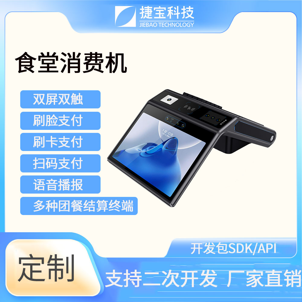 捷寶科技是國內(nèi)最早推出基于Android系統(tǒng)智能硬件的廠家之一。產(chǎn)品形態(tài)涵蓋手持、臺式、立式、掛式、柜式、單屏、雙屏;功能上圍繞NFC識別、條碼識別、生物識別,AI識別等技術(shù)大類,開發(fā)出可識別CPU卡、M1卡、射頻卡、二代身份證、社???、一維條碼掃描、掃碼支付、指紋識別、人臉識別、掌靜脈識別、虹膜識別、AI菜品識別、智能語音識別等功能的各類產(chǎn)品。